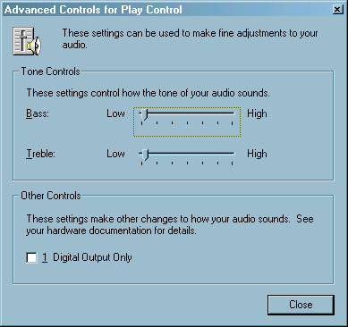 Note: with more expensive versions of the same hardware card, you may need other settings to avoid CMSS, or 3D ambient sound effects. Check under the "Creative" programs group for any other control or mixers that may effect the audio of the card.