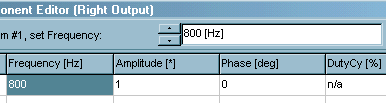 To do this, you can download a special Praxis configuration file by right-clicking here: MixerDebug.ini. When prompted, save the file to your "C:\Praxis" directory. Then from PRAXIS, go to your "Config, Load Config File" menu and select "MixerDebug.ini". After the configuration file loads, click on the "configure" (or "hide configure") button under in the "Stimulus" panel so you can see the "(Stim)" configure form. Click on the lower "Edit Tones (Ch2)" button of that form, and you should see the "Waveform Component Editor" for the Right Channel. Click once on the number (probably 1000) under the words "Frequency [Hz]", and then use the control at the top of the form to adjust the frequency down to 800Hx. Then click "Done".