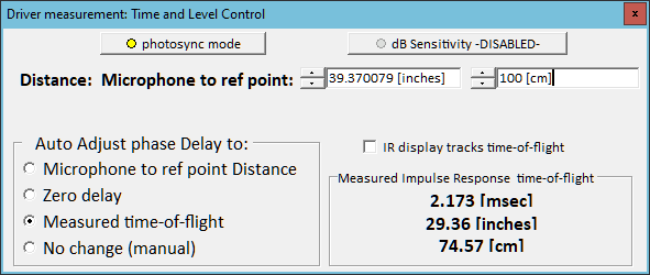 Microphone to reference point distance: compensates for the delay caused by time sound takes to travel the distance manually entered at the top. Use an accurate measure of the distance. This is the method to use when generating data files of drivers for crossover network design.
