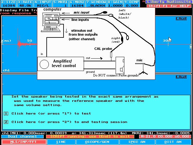 A Script for pass/fail testing of the frequency response and absolute phase of loudspeakers is provided with LAUD, or can be downloaded from our web site. This script provides for automated generation of the upper and lower limit curves (using a reference speaker), specification of the decibel error tolerance allowed, as well as for repeated testing and automated Pass/Fail evaluation of a series of loudspeakers. The Script can be used as a basis for a custom evaluation script, or in many cases can be used as-is without modification.
